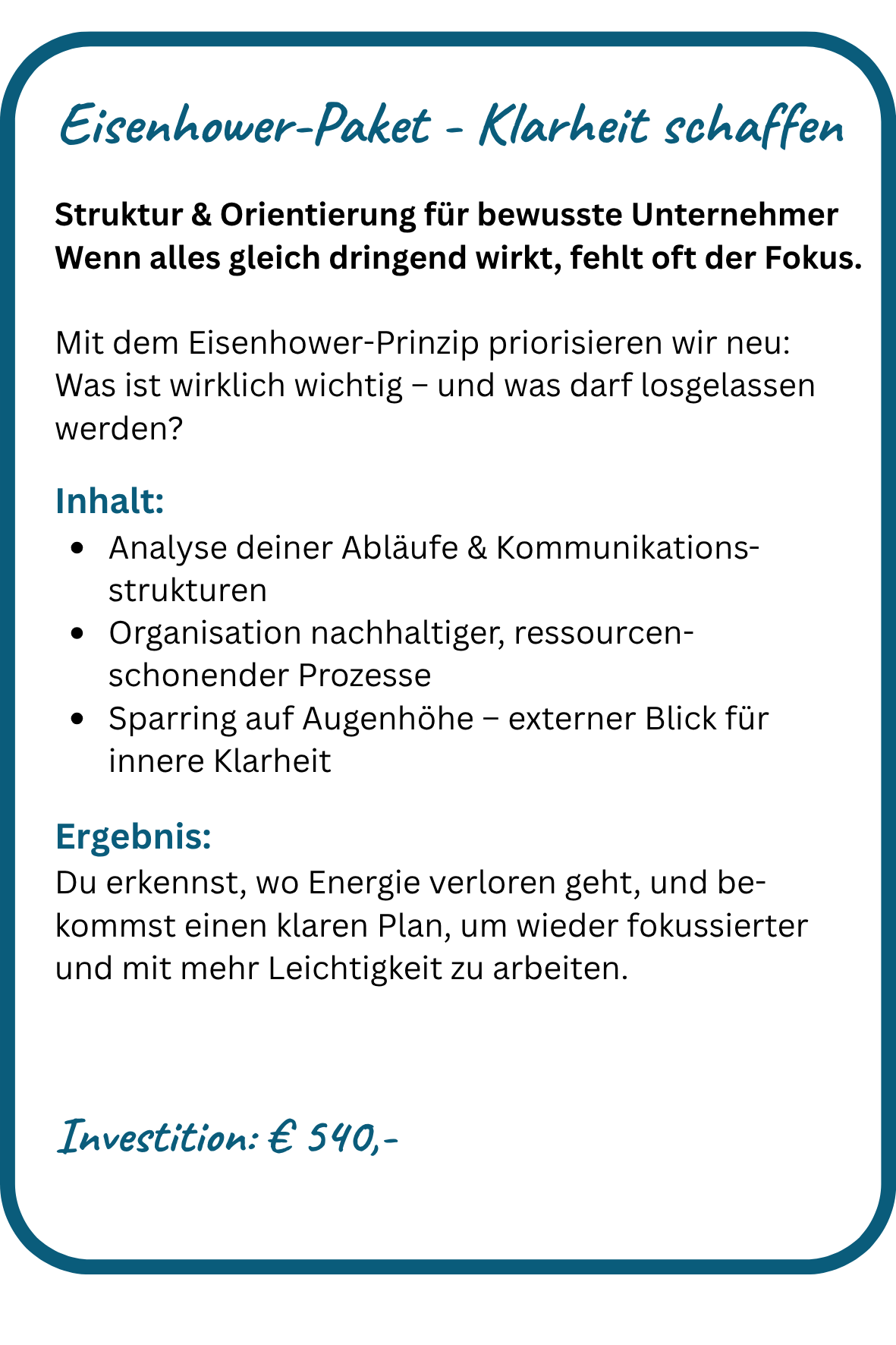 Meine Pakete schaffen dir Zeit-Räume für das Wesentliche – für dein Kerngeschäft, für Kreativität, für dich.